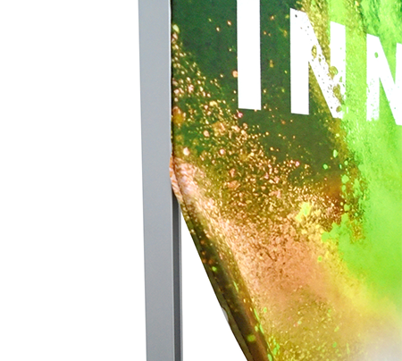 Le système QSeg repose sur une structure en aluminium au profil mince de seulement 2,5″ d’épaisseur. Offert en plusieurs formats et doté de connecteurs permettant d’assembler les modules entre eux, il propose une modularité complète et une grande liberté de configuration. L’impression est réalisée sur un tissu de haute qualité, lavable à la machine, qui conserve l’éclat de ses couleurs au fil du temps.