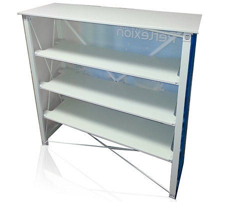 Les comptoirs portatifs sont des solutions pop-up textiles pensées pour une installation rapide et sans effort, idéales pour les road-shows et les stands d’exposition. Pratiques et fonctionnels, ils intègrent une tablette intérieure permettant de garder le matériel à portée de main. Entièrement personnalisables, les visuels peuvent être imprimés en façade seule ou avec côtés et verso. L’impression est réalisée sur un tissu de qualité supérieure, lavable à la machine et conçu pour préserver l’intensité des couleurs, événement après événement.
